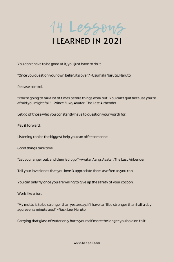 I was aware of most of these lessons, but 2021 truly helped me enforce them in my life and I couldn’t be more grateful at embodying a more balanced and positive mindset and lifestyle.